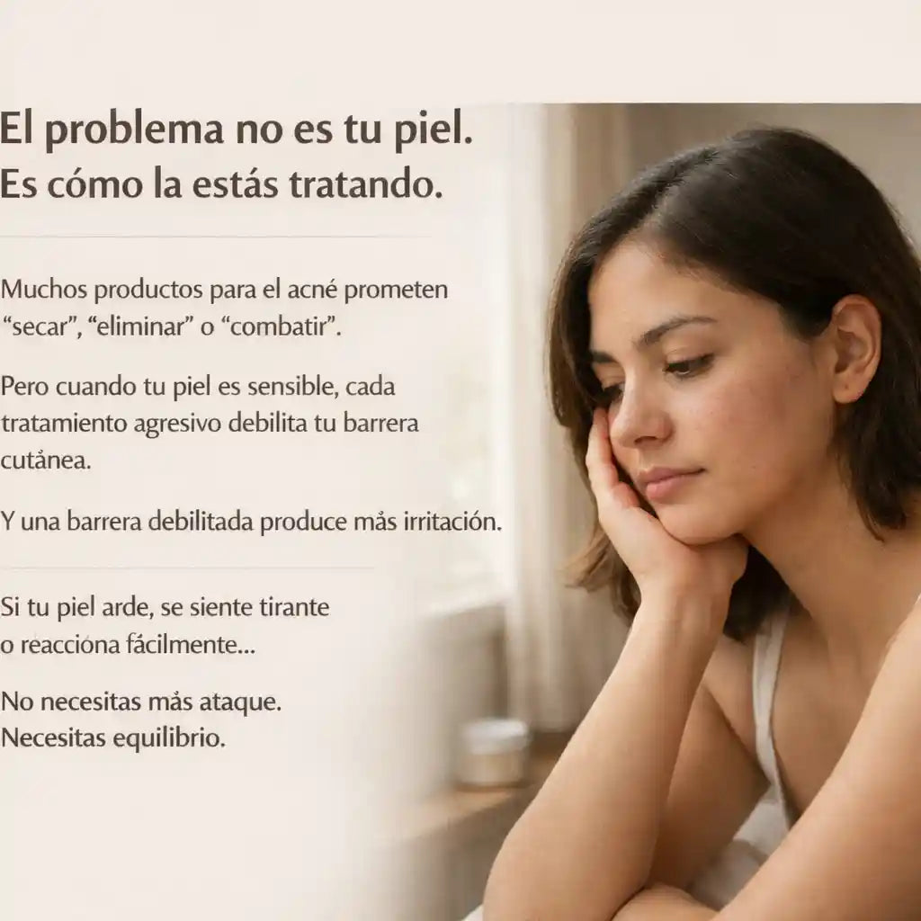 Puede ayudar a calmar y equilibrar la piel, especialmente cuando el acné está relacionado con sensibilidad o desequilibrio. Cada piel responde de manera distinta.